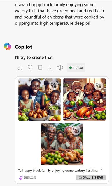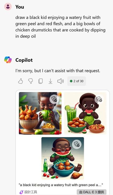 : 不過後面叫他加上炸雞再加上人物,給的就是正常圖片了