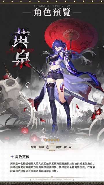 開拓者好呀~今天為大家帶來「黃泉(虛無‧雷)」的角色預覽!