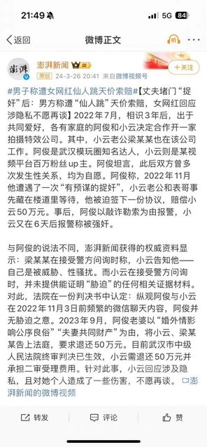 轉自NGA 新聞有用假名 阿俊是苦主 小云是女主 苦主跟女主在同家公司工作 兩邊都有家庭 多次發生關係後 被女主的老公跟表哥堵到 威脅50萬人民幣並簽下協議 看監視器畫面是預謀堵人的 後來苦主的老婆以這50萬是夫妻共同財產為由 向法院提告要求返還50萬 最後法院判決女主得歸還這50萬 https://i.imgur.com/jdMCdlf.jpeg