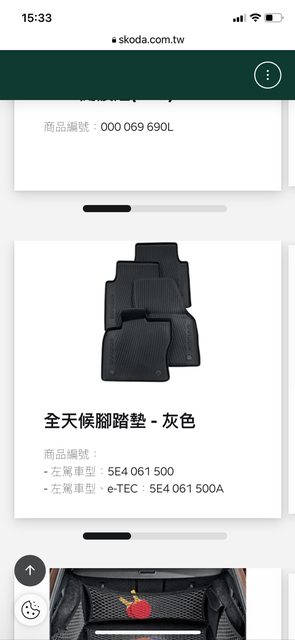 標題[週邊] Skoda Octavia Combi原廠防水腳踏墊