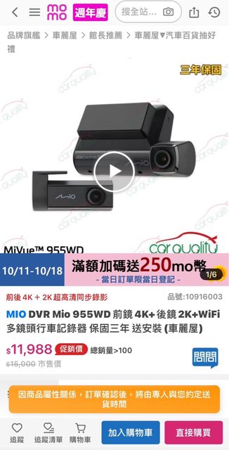 物品名稱:Mio 955wd+E60 行車記錄器