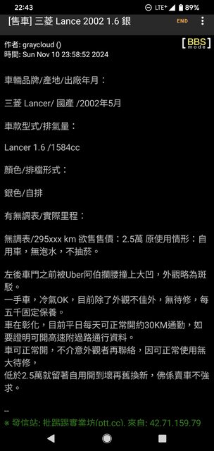 ※ 文章網址: https://www.ptt.org.tw/CarShop/M.1731372892.A.949