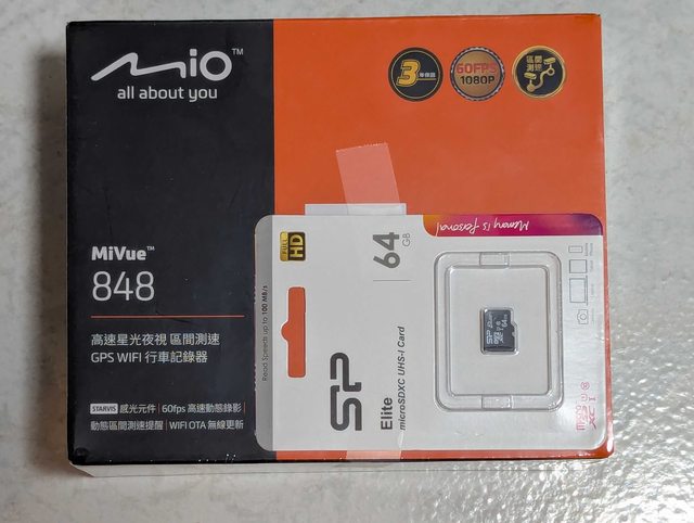 物品名稱:Mio848+A60 前後鏡頭行車記錄器 + 64GB 記憶卡