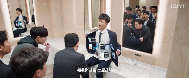 在廁所他西裝一拉開,身上、放套滿滿的手機