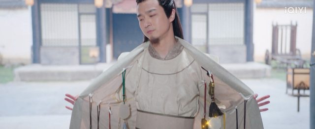 跟之前兩集古裝,他把外衫一拉開,掛著各式技能工牌的畫面非常呼應!
