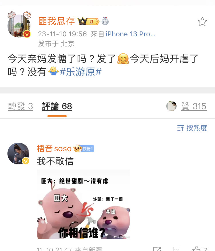 → hueisung: 好奇他們本名,我在微博上看到陳醒掛了我哭比他們家公子 11/11 01:10