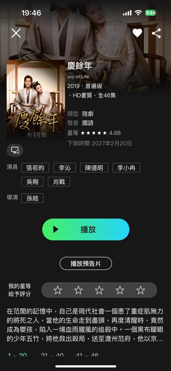 → sofa89: 之前慶餘年在愛奇藝有播,但現在可能版權到期收回去了 05/09 11:54