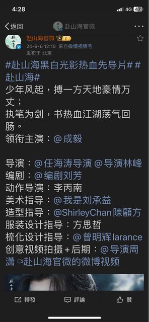 推 cattielin: 搭的人真不錯 拍完赴山海接下來就等長安二十四計了 那 06/06 22:53
