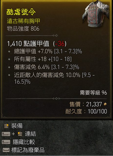 標題[交易] 售806上衣 護甲值近頂 全屬頂 雙減傷 96