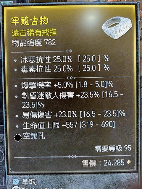 標題[競標] D4 95等782戒指 5暴率/23易傷/557生命