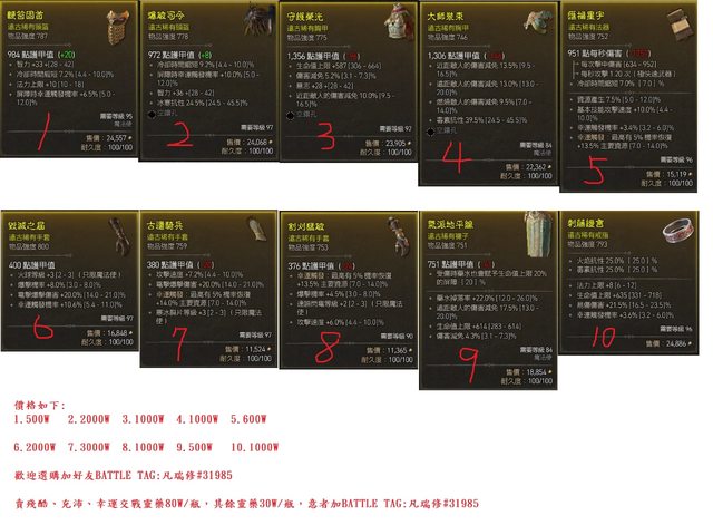 → torrot : 當然你要挑詞綴數值或是裝等又是一回事 07/06 10:00