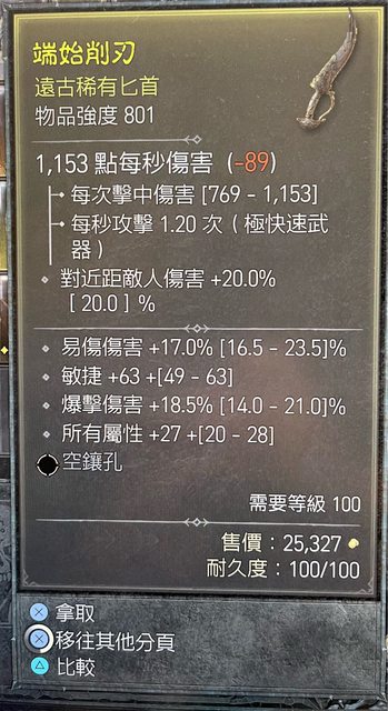 標題[競標] 俠盜 801匕首 頂主屬全屬帶易傷爆傷