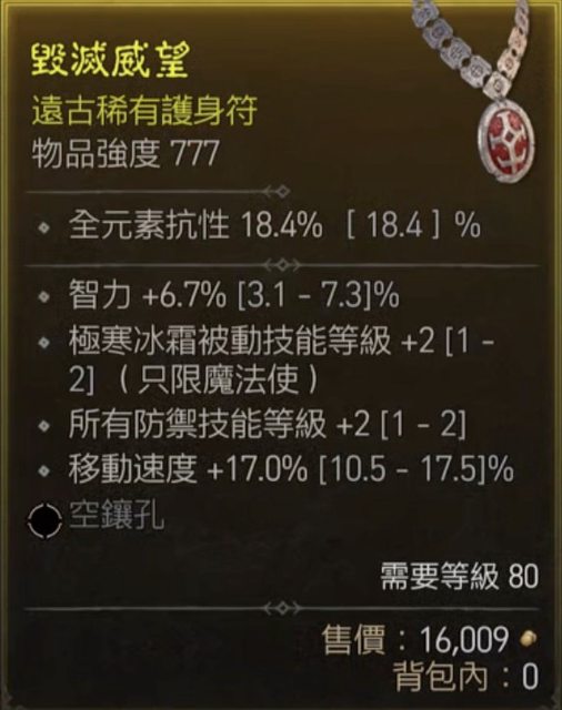 標題[交易] D4 跑速/智力/防禦技能項鍊