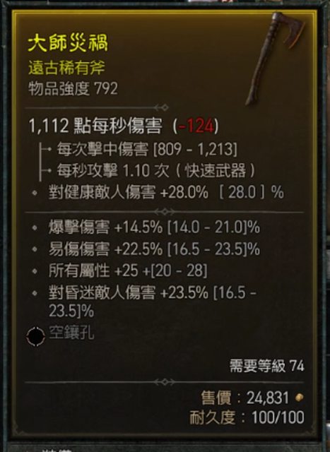 2.易/爆/全屬單手斧,屬性全對但強度沒破800,售300萬(已預訂)