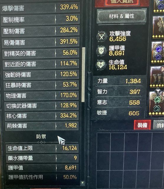 裝備加了2000的血;基礎生命7959,有8164來自其他地方