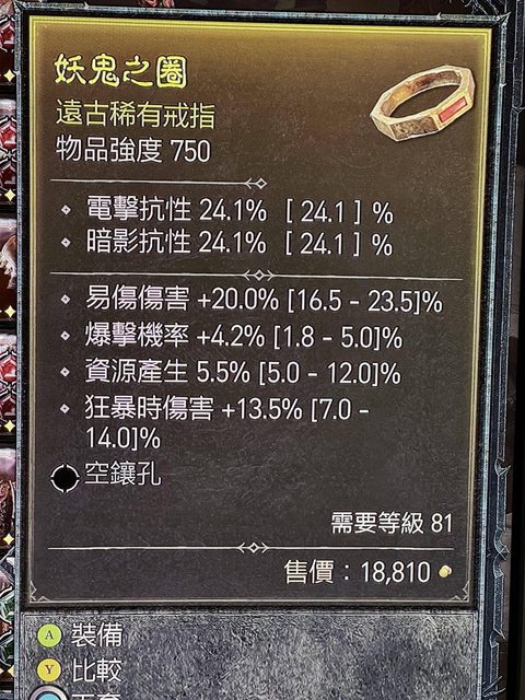 4. 易傷、爆率、爆傷戒指,等級=85,升級到725以上會重骰
