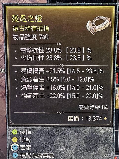 3. 易傷、資源產生,爆傷戒指,等級=84