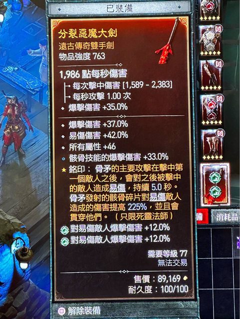 → Sirctal : 所以理想上的完美詞綴應該是 智力 易傷 爆傷 骸骨爆 07/12 08:21