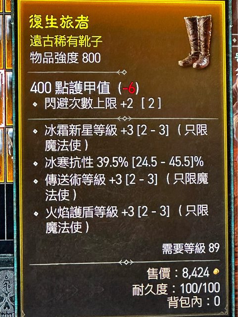 標題[競標] d4 法師鞋 閃避 冰霜 傳送頂
