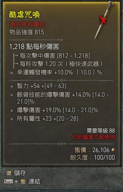 標題[競標] D4 LV88 裝等815 智+全屬+爆傷 單手魔杖
