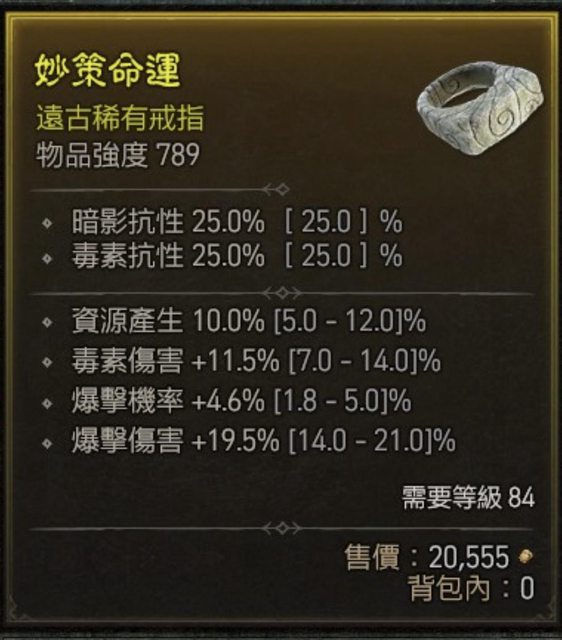 標題[競標] D4 84級戒指 資源/爆擊/爆傷/毒傷