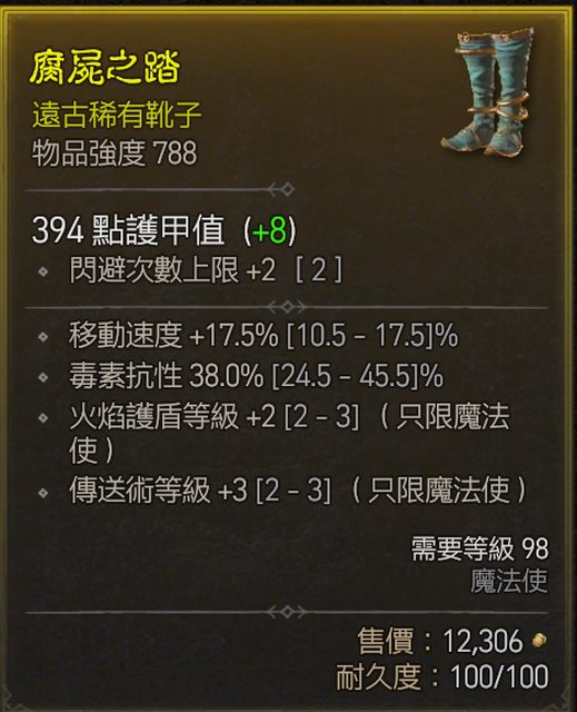 標題[競標] D4 法師頂跑速傳送+3閃避次數基底鞋