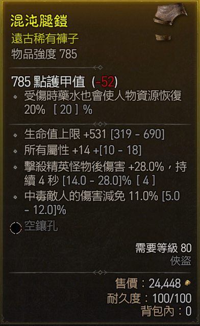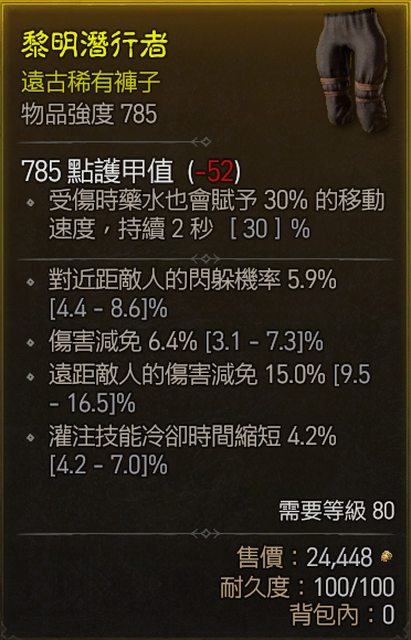 6. 785褲子 近距離閃躲 減傷 遠距離減傷 灌注冷卻
