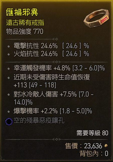 15. 770戒指藍孔 幸運 暴率 冰冷傷害