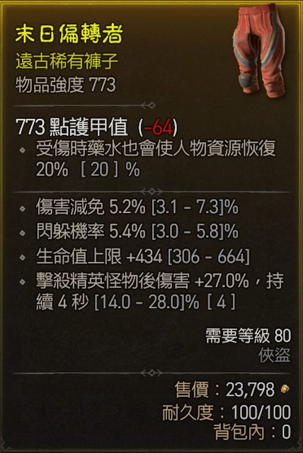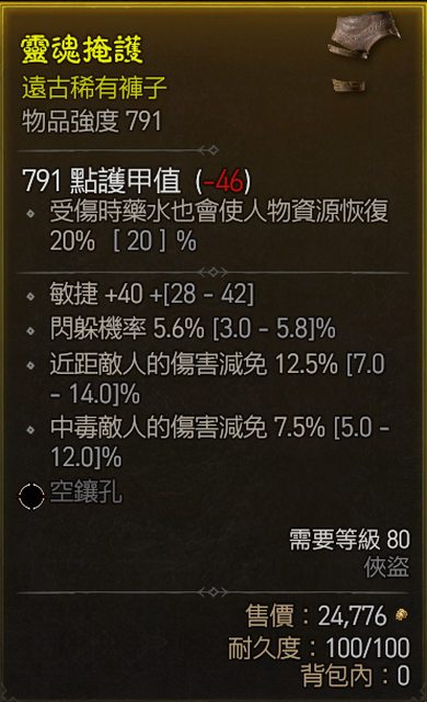 5. 791褲子 敏 閃躲 近距離減傷 中毒減傷