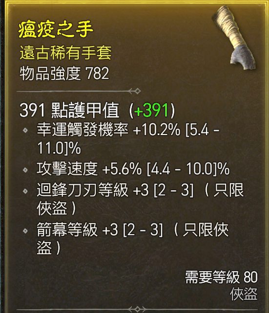 標題[競標] D4 S1 幸運/攻速/回刃 俠盜手套