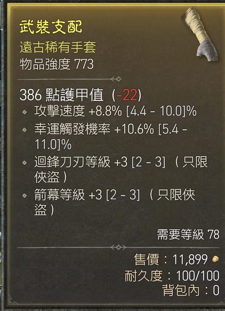 物 品:攻速 幸運 刀刃 手套