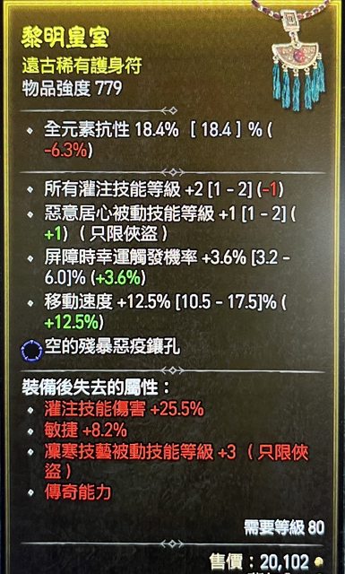 物 品:俠盜項鍊 灌注2/惡意1/移速(藍孔)