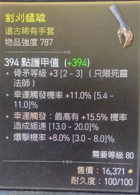 標題[競標] D4 S1 死靈 3頂骨矛手套