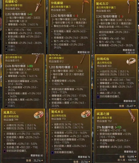 賣以下死靈裝備 皆已標上價格