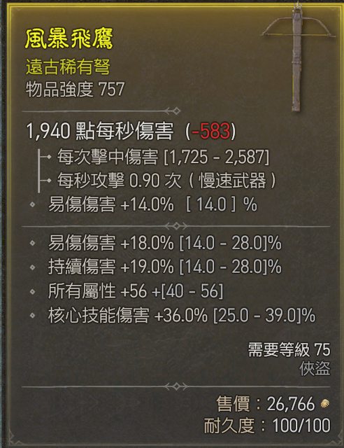 物 品:俠盜-弩 頂全屬/近頂核心/易傷 (洗敏必出)