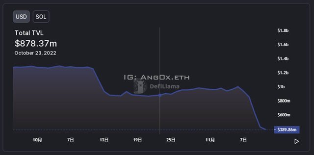 Solana Total Value Locked (1M):最後順帶提一下跟 FTX 關係密切的 Solana,從 11/6