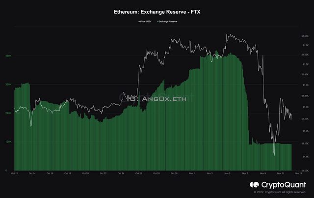 FTX ETH Reserve (1M):再來看到 FTX 的 ETH 存量部分,比較特別的是,以太幣的轉出開