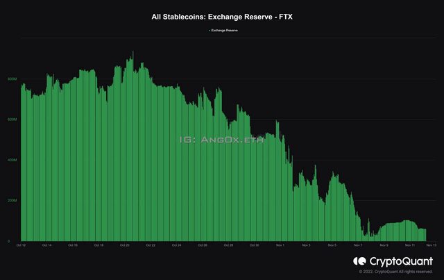 FTX Stablecoins Reserve (1M):最後我們來看到的是,影響到最多人的穩定幣存量,從 1