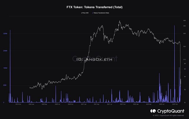 FTT Token Transfers :在今年的 9/28,鏈上轉移紀錄出現了有史以來單日最大額的 FTX