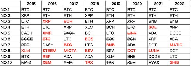 噓 fbifxxkma: 前10大市值 結果買到LUNA , UST, FTT, SOL, AVAX 01/01 06:46