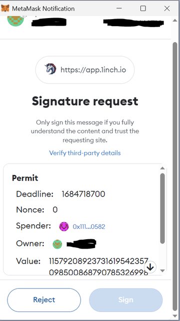 現在可以從1inch看一下permit鏈下簽名會長怎樣。有沒有發現permit鏈下簽名跟上面的網