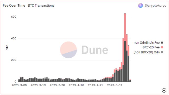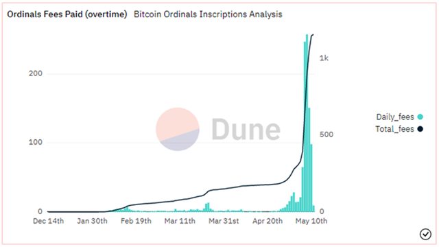 Figure 4b: Bitcoin Ordinals Fees Paid (@Dune)