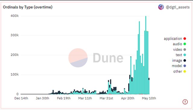 Figure 4c: Bitcoin Ordinals by Type (@Dune)