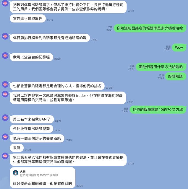 這是他們辦的交易比賽,第一到三名獎金約當六到一萬,比賽方式是給你1分K或5分K的虛