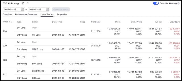 如圖,這套策略在過去 6 年半的盈利為 2087.49%,勝率為 51.3%,最大回撤僅為 12.9%