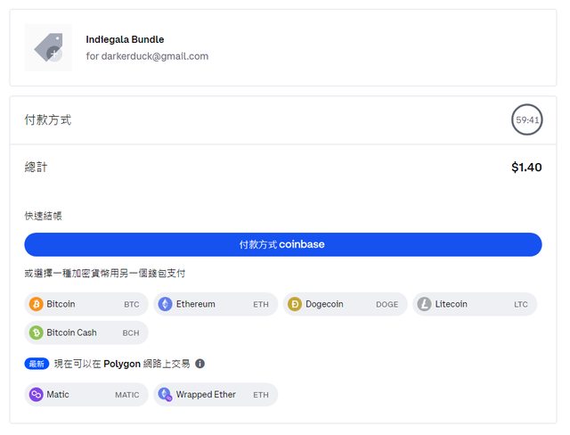 我就實際跑個流程,首先我買個Go Cats Bundle 兩美元計價