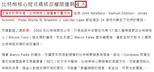 看看最後BitcoinCore開發者越來越少,華爾街頭頭要不要自己跳下來coding?