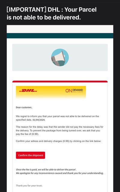 safe 3,然後選擇用UPS運送,收到官方確認的email後就收到了DHL的釣魚信,大意就是