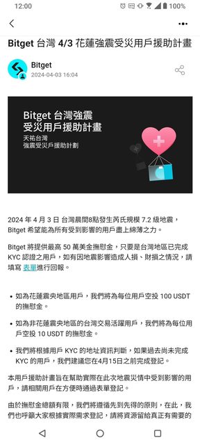 標題[發錢] Bitget 4/3花蓮強震受災用戶援助計畫