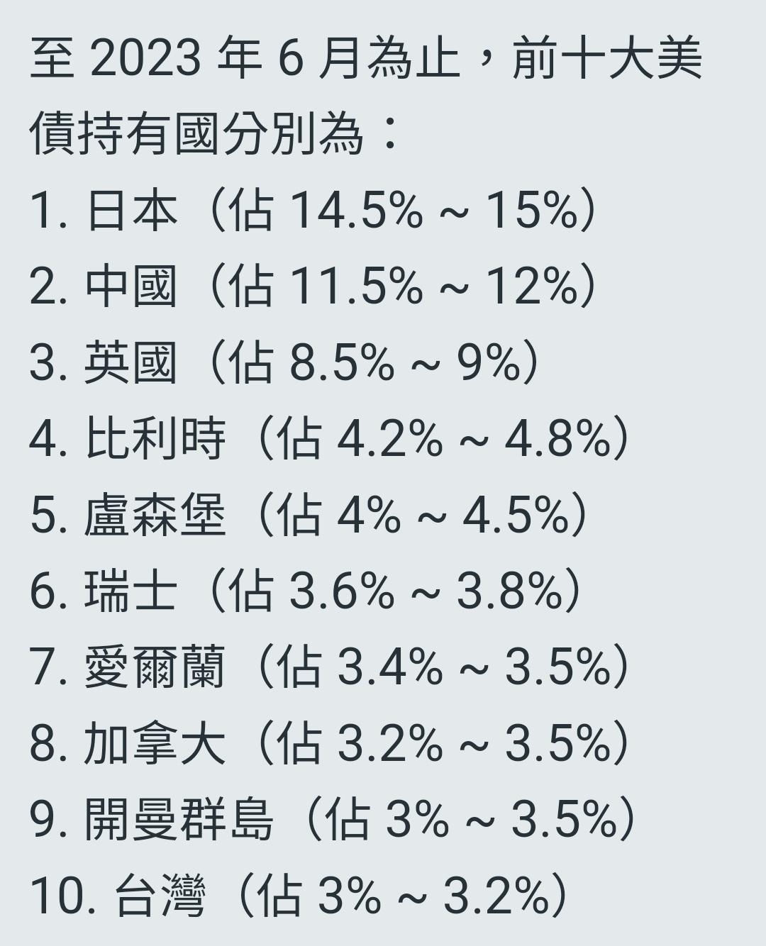 → liton: 另外,美國不在名單上面?Fed持有的美債算入哪? 05/15 10:27